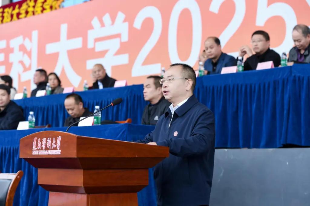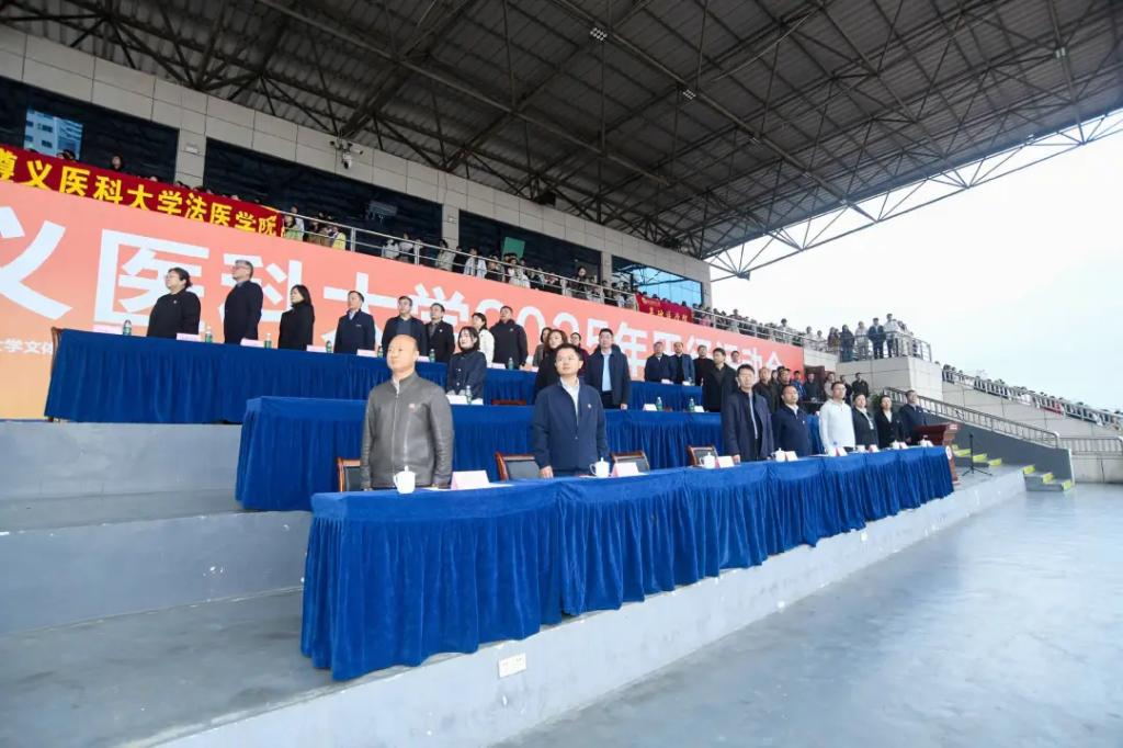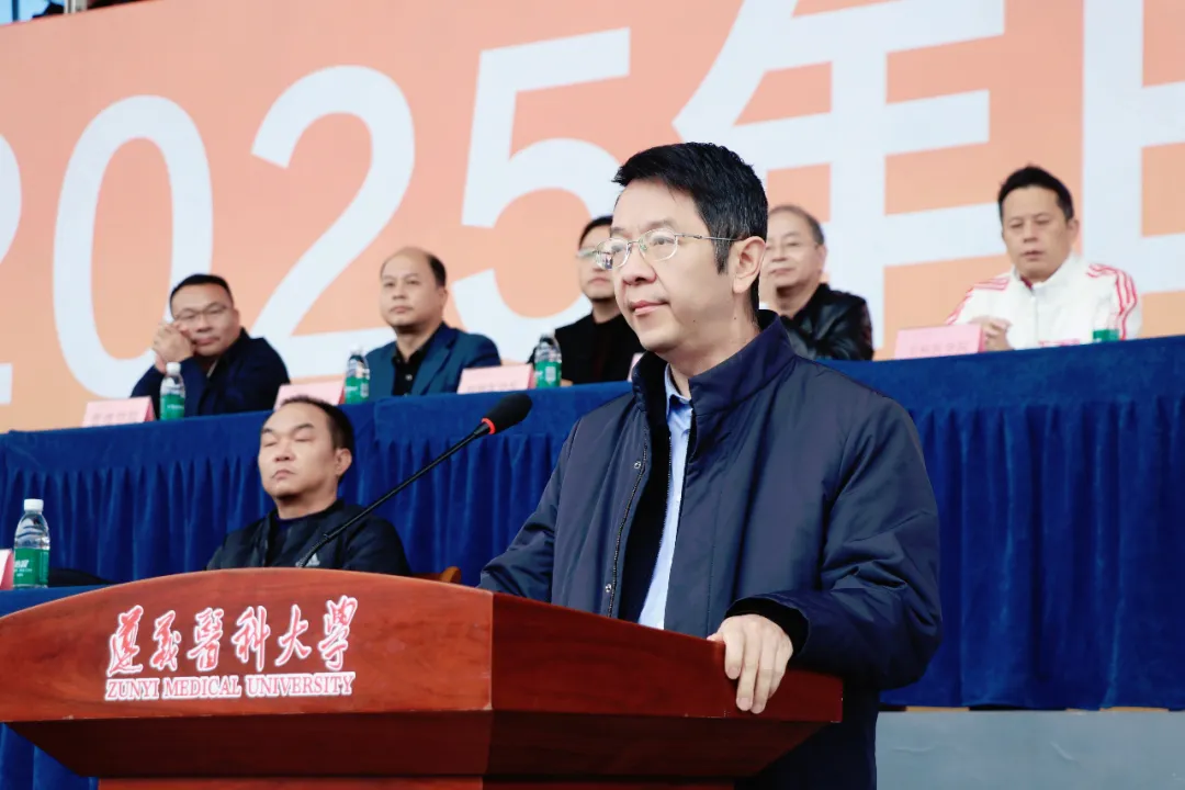 当学校党委书记刘文喊出“遵义医科大学2025年田径运动会,开幕!”全场掌声雷动,气氛瞬间推向最高潮!学校党委副书记、校长龚其海在致辞中为所有运动员打Call:“每一次站上起跑线都是勇气,每一次坚持到底都是胜利!”一句勉励暖心田,也为本届运动会写下了最佳注脚。